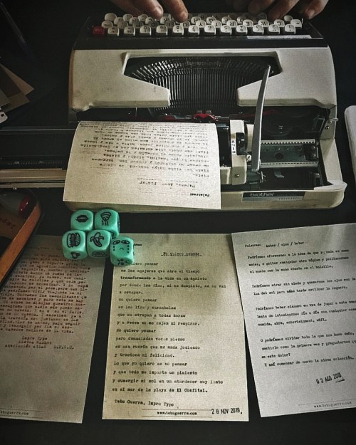 Impro Typo es un proyecto de escritura creativa que utiliza la máquina de escribir y sus recursos gráficos propios de la herramienta, como la tinta, su mancha, la textura y el papel.