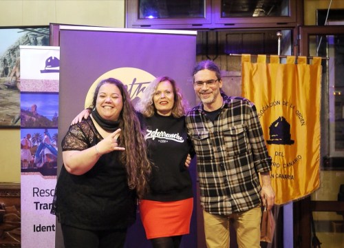 En la imagen, con Electra Paky Suárez Santana y Celia, grandes slamers y bestias del escenario, cada una a su modo y estilo, con las suelas gastadas de habitar las tablas, entendiendo este formato de poesía escénica como lo que es. A ellas les agradezco el compañerismo, los consejos, las críticas constructivas, todo lo que hemos compartido… Y su trabajo mes a mes, porque lo disfruto y aprendo.