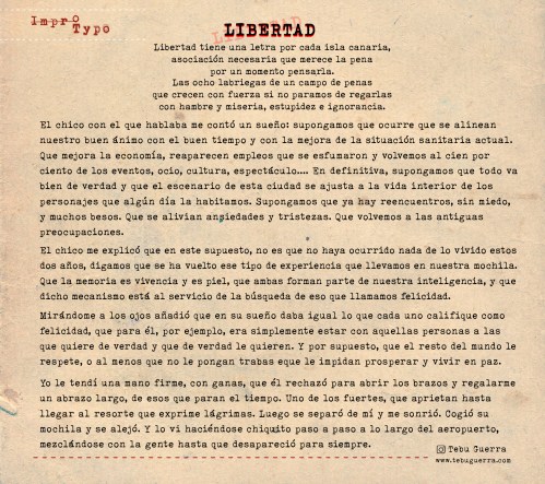 A máquina,Escritura,Impro Typo,Publicado Impro Typo en La Brújula – Junio 2021 Página para La Brújula Guía de Ocio y Cultura del mes de junio de 2021. Comparte: Compartir en X (Se abre en una ventana nueva) X Compartir en Facebook (Se abre en una ventana nueva) Facebook Compartir en WhatsApp (Se abre en una ventana nueva) WhatsApp Share on Pinterest (Se abre en una ventana nueva) Pinterest Compartir en Telegram (Se abre en una ventana nueva) Telegram Email a link to a friend (Se abre en una ventana nueva) Correo electrónico Me gusta Cargando... Relacionado