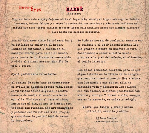 A máquina,Escritura,Impro Typo,Publicado Impro Typo en La Brújula – Mayo 2021 Página para La Brújula Guía de Ocio y Cultura del mes de abril de 2021. Dedicada a Madre. Comparte: Compartir en X (Se abre en una ventana nueva) X Compartir en Facebook (Se abre en una ventana nueva) Facebook Compartir en WhatsApp (Se abre en una ventana nueva) WhatsApp Share on Pinterest (Se abre en una ventana nueva) Pinterest Compartir en Telegram (Se abre en una ventana nueva) Telegram Email a link to a friend (Se abre en una ventana nueva) Correo electrónico Me gusta Cargando... Relacionado