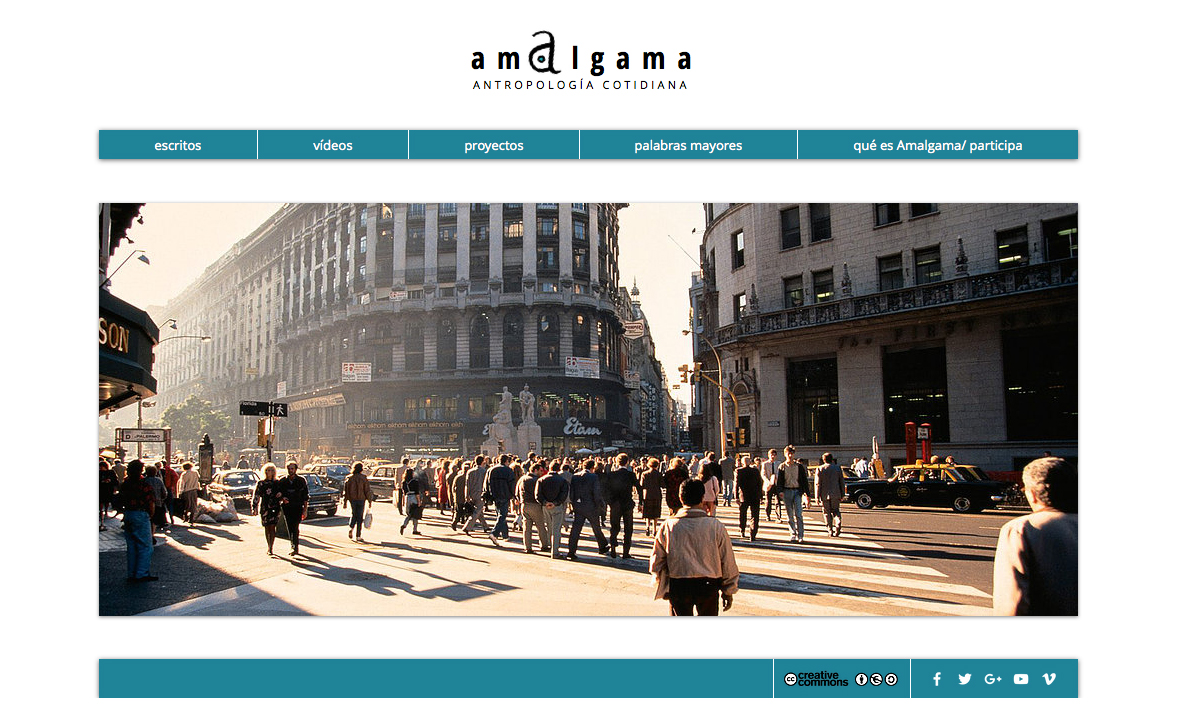 Revista digital de antropología cotidiana. “Amalgama es, antes que nada, un proyecto que surge a partir de una necesidad vital, que es la recuperación del aprendizaje y el valor de compartirlo y reconsiderarlo. Esta idea se lleva a cabo a través de un recuestionamiento sobre nosotros y sobre los otros en forma de palabras o de imágenes. Amalgama se expresa de manera sencilla, al margen de lo académico, buscando el contacto con hechos cotidianos y con la humanidad que nos da nombre, utilizando para ello tanto el drama como el humor. Amalgama está pensada en forma de revista abierta, dando cabida a las personas que estén interesadas en participar a través de sus diversas expresiones.Amalgama se construye y se mueve”.