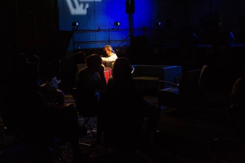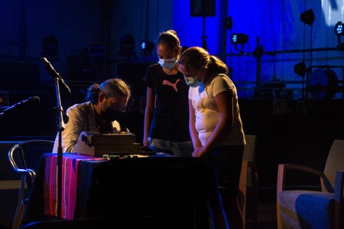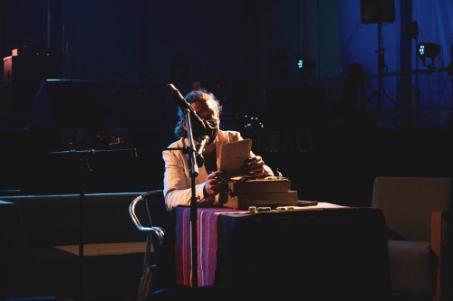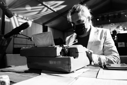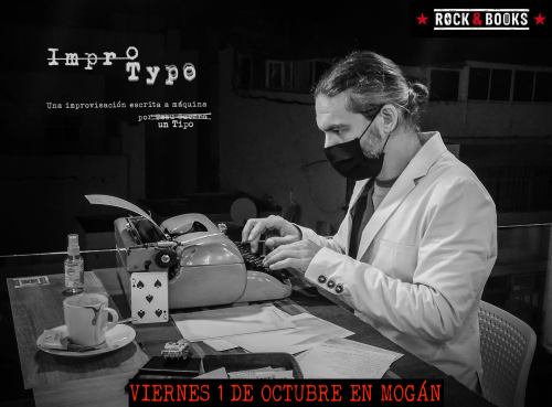 Impro Typo visitó Rock and Books con su máquina de escribir de los años 50. Una acción en vivo en escenario para el patio de butacas en la que el público fue acercándose a darme tres palabras y a continuación yo les escribía el texto. Proyectado en pantalla situada a mi espalda el público podía ver lo que yo escribía al momento. El audio recogía el teclear de mis dedos y los sonidos característicos de la máquina como la campanilla al final de cada verso o renglón.